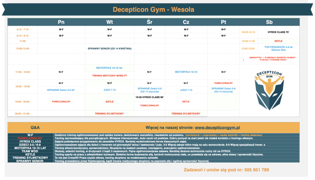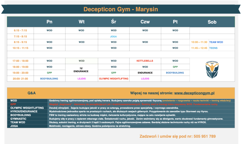 Odpowiednik WOD’a z Marysińskiego grafiku, program treningowy budujący sprawność fizyczną, rozumianą wielopłaszczyznowo.